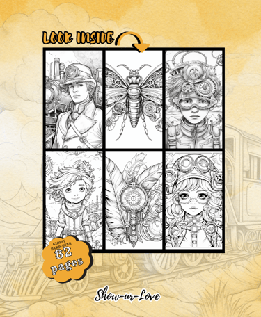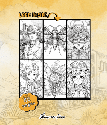 Discover a captivating fusion of Victorian elegance and industrial marvels in our Steampunk coloring book.